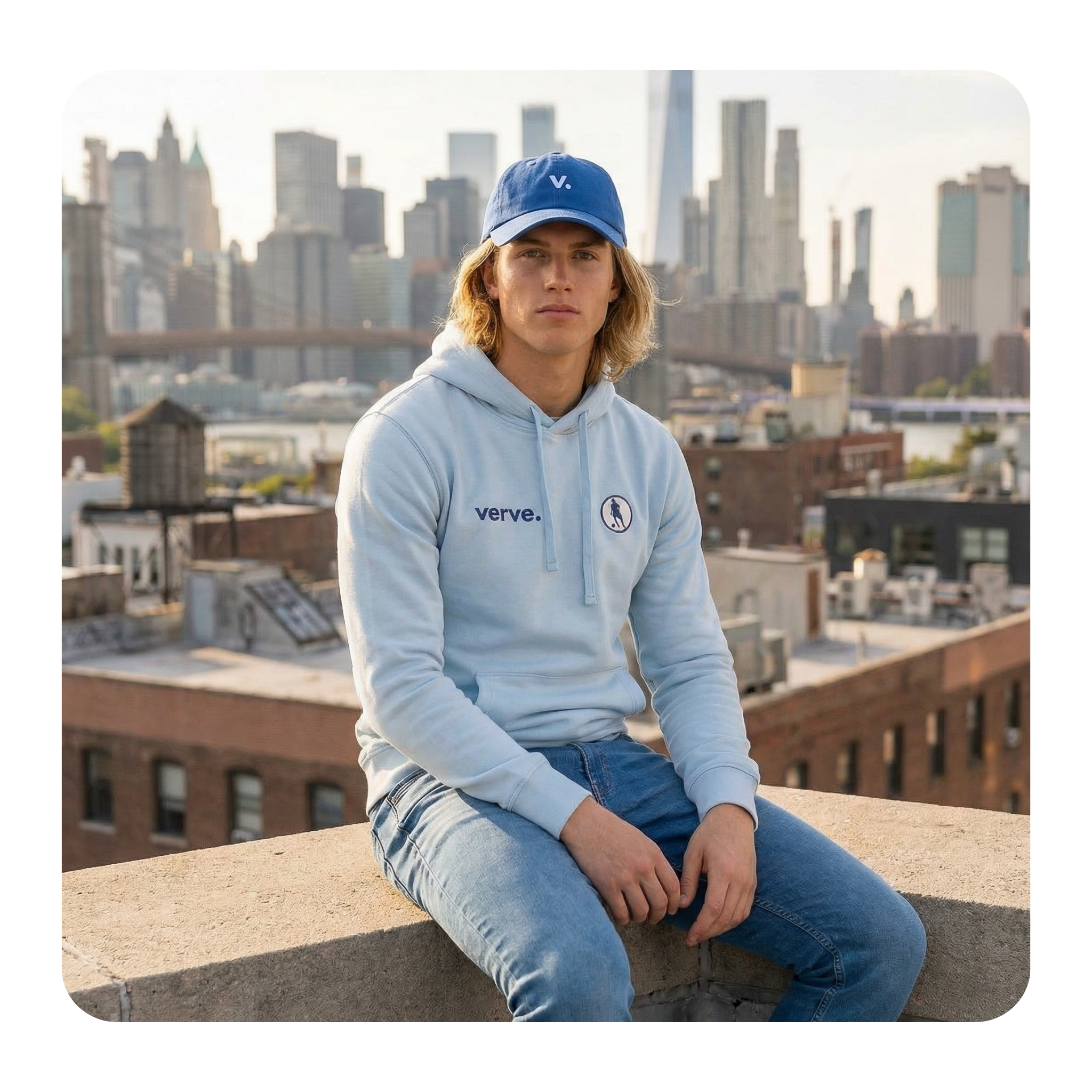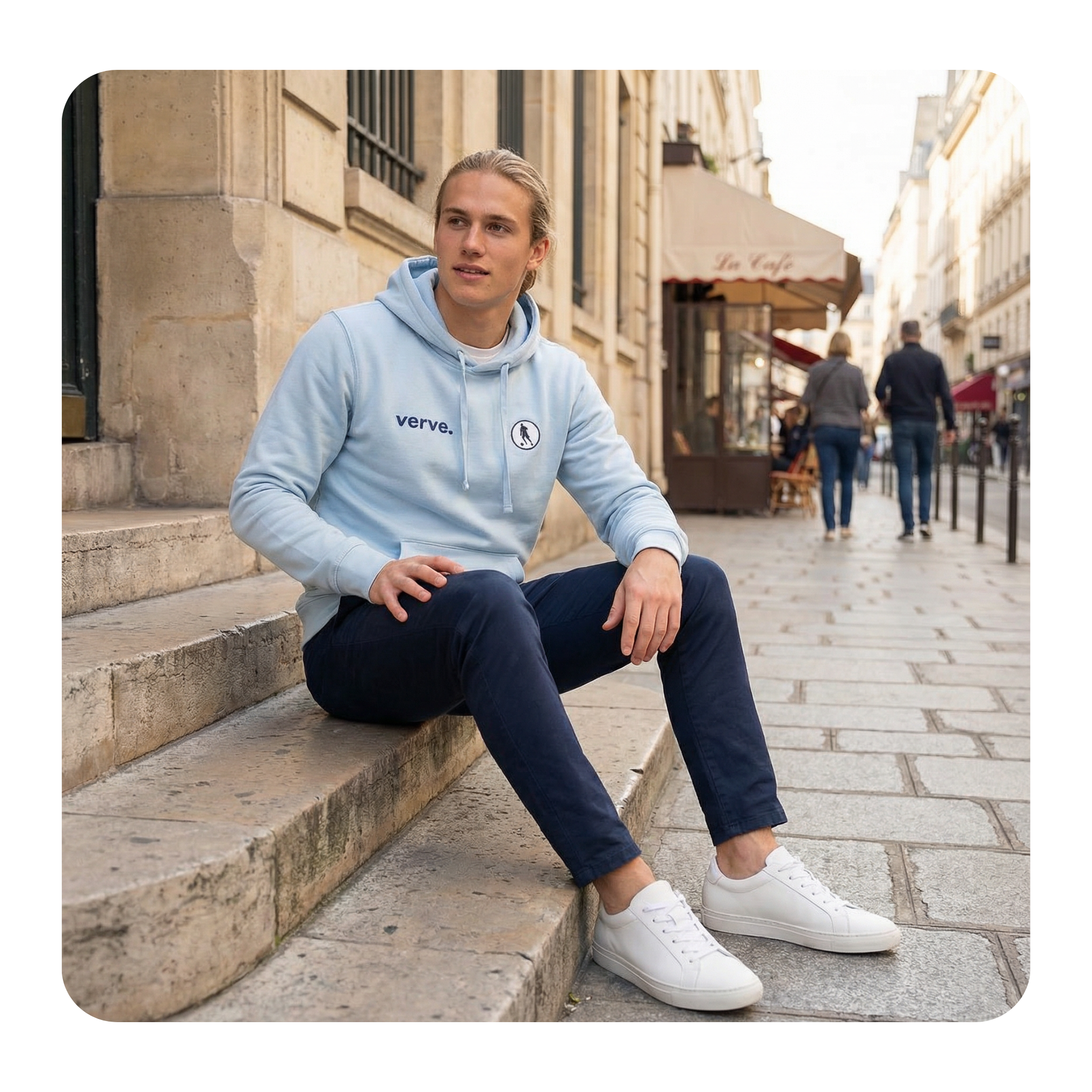 Hoodie de algodón 85 % orgánico con ilustración y jugador bordado en el pecho.