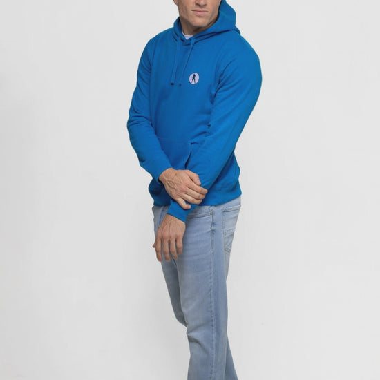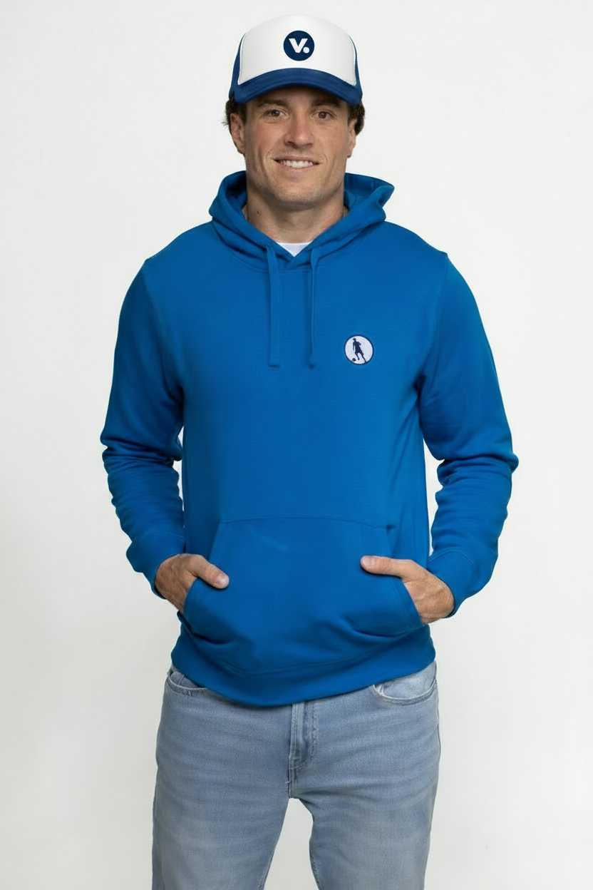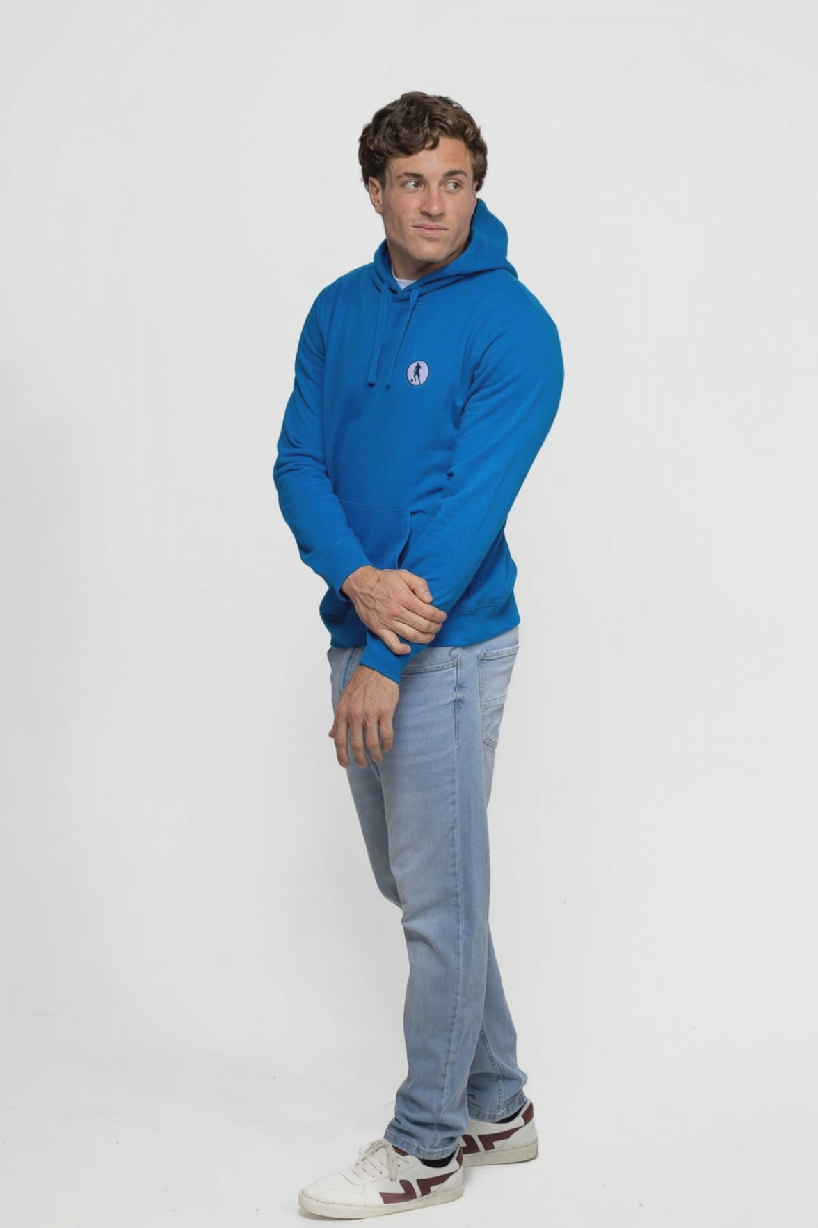 Hoodie de algodón 85 % orgánico con ilustración en la espalda y jugador bordado en el pecho.